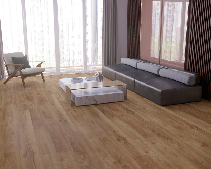 Finished with a vinyl top layer that allows us to replicate any style and texture, SPC Flooring truly rivals Hardwood and Laminate. For those looking for flooring that will withstand consistent amounts of high traffic whether in a residential or commercial space, with the ease of DIY installation and an astounding aesthetic, SPC Flooring is the ideal. Furthermore, this type of flooring is environmentally friendly throughout its entire production cycle, constructed without the use of glue, eliminating the risk of formaldehyde completely.