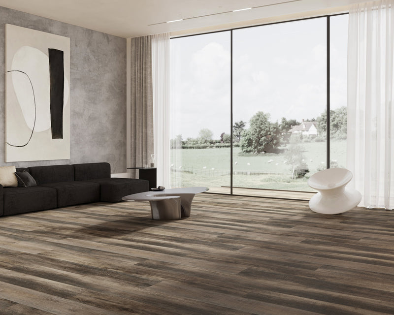 Finished with a vinyl top layer that allows us to replicate any style and texture, SPC Flooring truly rivals Hardwood and Laminate. For those looking for flooring that will withstand consistent amounts of high traffic whether in a residential or commercial space, with the ease of DIY installation and an astounding aesthetic, SPC Flooring is the ideal. Furthermore, this type of flooring is environmentally friendly throughout its entire production cycle, constructed without the use of glue, eliminating the risk of formaldehyde completely.