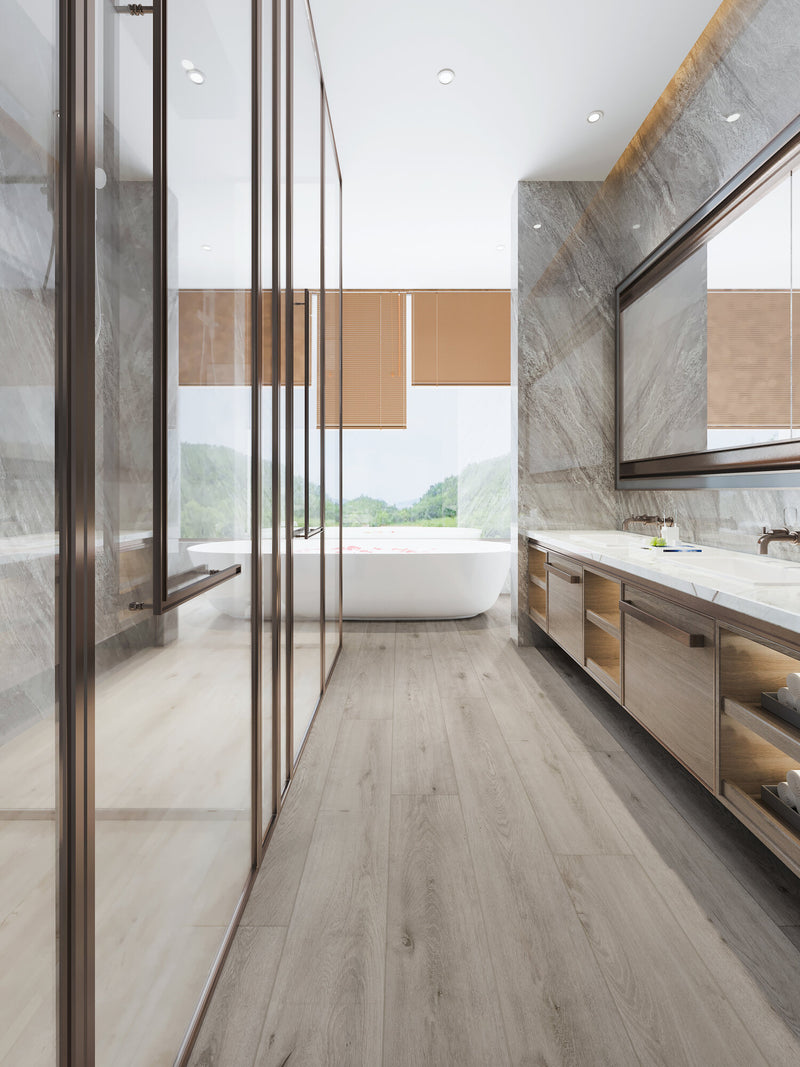 Finished with a vinyl top layer that allows us to replicate any style and texture, SPC Flooring truly rivals Hardwood and Laminate. For those looking for flooring that will withstand consistent amounts of high traffic whether in a residential or commercial space, with the ease of DIY installation and an astounding aesthetic, SPC Flooring is the ideal. Furthermore, this type of flooring is environmentally friendly throughout its entire production cycle, constructed without the use of glue, eliminating the risk of formaldehyde completely.