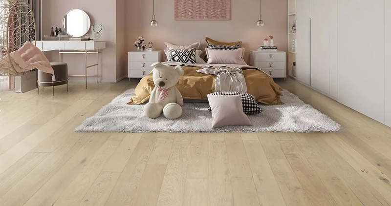 Introducing "Tailor" from the Master Artisan Collection, an embodiment of sophistication in white oak engineered hardwood flooring. Its soothing beige hue infuses spaces with timeless elegance and versatility. Crafted for enduring beauty, this flooring exudes understated charm, making it the perfect canvas for any design aesthetic, from classic to contemporary.