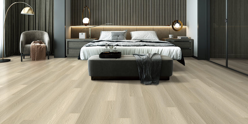 Discover "Dover White" from the SolidCore 5G Collection—a luxurious beige shade in luxury vinyl flooring. Its Micro V-Beveled Edge detail exudes sophistication and depth. Engineered for both elegance and endurance, this flooring redefines your space with a perfect blend of style and lasting quality, elevating any room with grace.