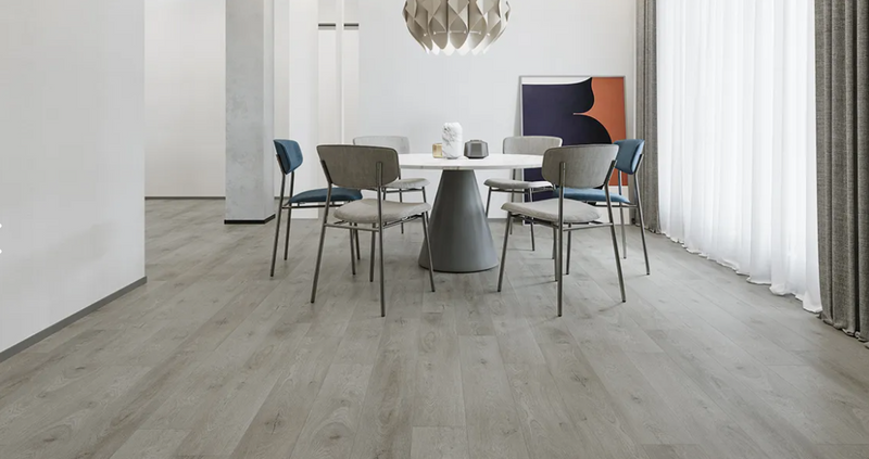 Unveiling Nightingale from the SolidCore 5G Collection—a mesmerizing grey embodiment of modern sophistication. This luxury vinyl flooring evokes a serene ambiance, harmonizing with diverse design palettes. With a Micro V-Beveled Edge, it exudes seamless charm and durability. Transform your space into an oasis of style and resilience.