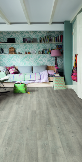Venice Oak Grey is a cool colour from TORLYS Park Lane Collection that captures the rich texture, beauty, and charm of classic, time-honoured hardwoods. The natural wood appearance of this collection of laminate hardwood is beautifully emphasized by clean lines. This grey-washed oak laminate flooring from TORLYS Park Lane collection is great for anyone looking for a modern take on a classic oak flooring. This collection is completely waterproof and backed by a 35-year warranty, meaning that it can withstand anything life throws your way.