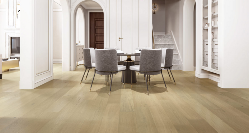 Introducing "Vinter" from the Master Artisan Collection, a testament to elegance and charm. This White Oak engineered hardwood flooring showcases a delightful light brown hue, creating a welcoming ambiance in any space. With its durability and sophisticated appeal, Vinter embodies both modernity and timeless beauty, enhancing your home's aesthetic.